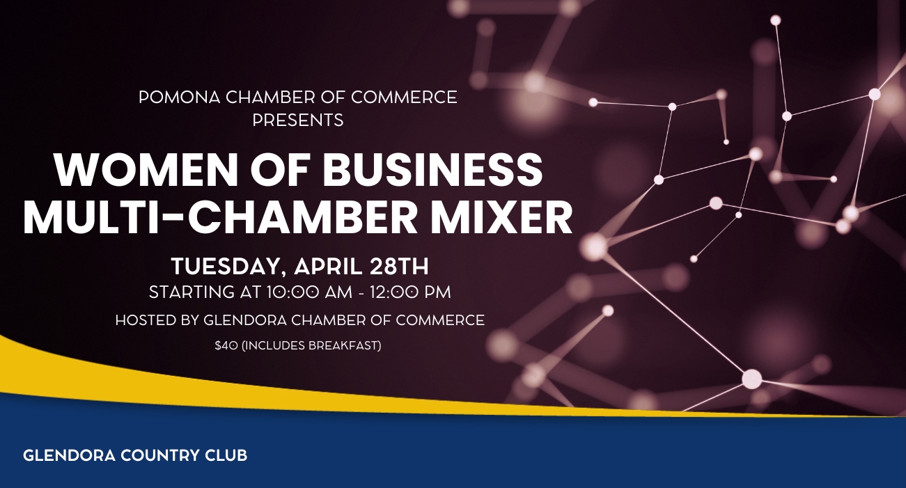 Apr 28 Women’s of Business Multi-Chamber Mixer 10:00 am - 12:00 pm Glendora Country Club 2400 Country Club Dr, Glendora Event Details Get Directions