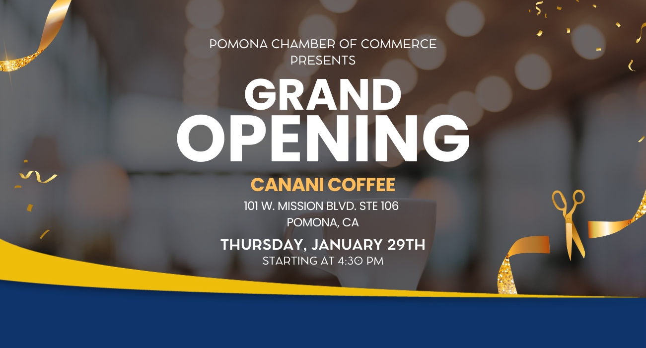 Jan 29 4:30 pm - 6:00 pm Grand Opening – Canani Coffee Canani Coffee 101 W. Mission Blvd. Ste 106, Pomona Event Details Get Directions